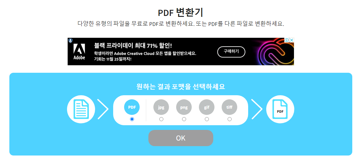 3. 원하는 포맷을 정하면 됩니다. 우리는 PDF로 바꿀 예정이니 그냥 그대로 진행합니다.